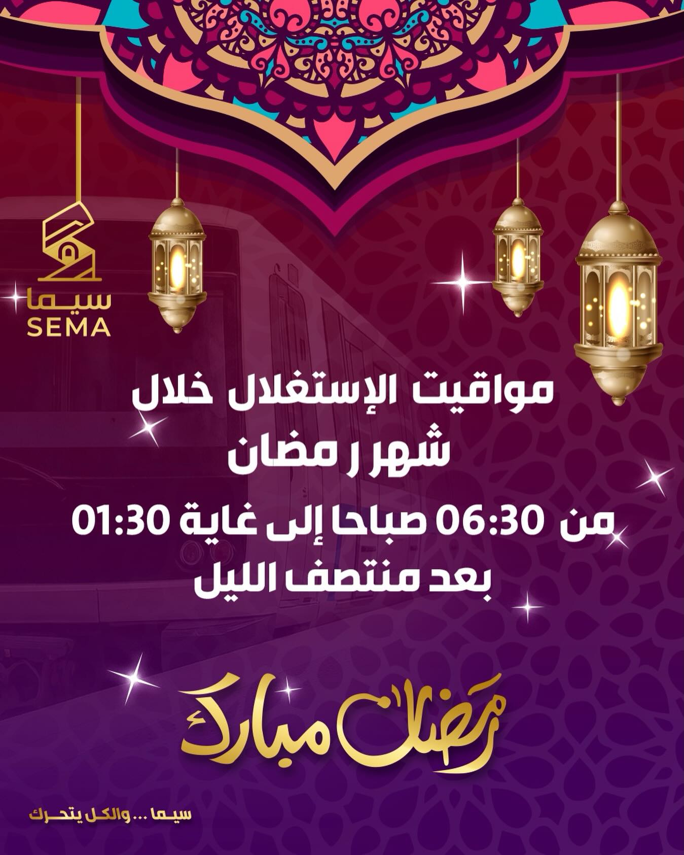 أعلنت شركة سيما للنقل، يوم الاثنين، عن إطلاق برنامج خاص باستغلال المترو خلال شهر رمضان الفضيل، وذلك التزامًا بتعليمات وزير الداخلية والجماعات المحلية والنقل، السعيد سعيود.