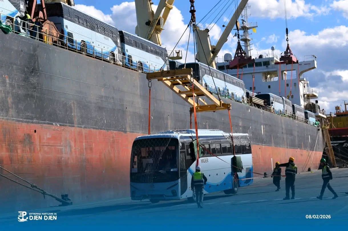 تتواصل عملية تدعيم حظيرة النقل الوطني باستلام شحنات جديدة من حافلات نقل المسافرين على مستوى ميناء جن جن بولاية جيجل، تحت إشراف مديرية الصناعات العسكرية لوزارة الدفاع الوطني.